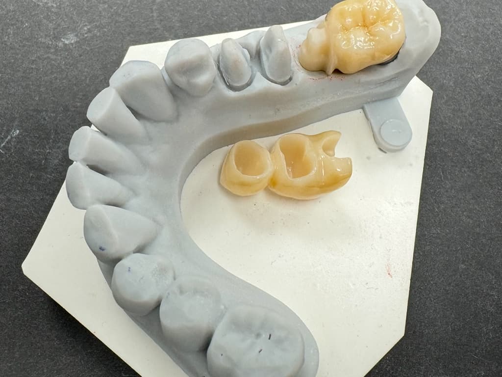 Eine Zahnbrücke ist eine hervorragende Möglichkeit, fehlende Zähne zu ersetzen, wenn benachbarte Zähne als stabile Träger dienen. Sie wird an den benachbarten Zähnen befestigt und schließt die Lücke im Gebiss. Unsere Brücken bestehen aus denselben hochwertigen Materialien wie Kronen und bieten sowohl ästhetische als auch funktionelle Vorteile. Ob für einzelne Zahnlücken oder größere Lücken – wir fertigen jede Brücke individuell, um eine perfekte Passform und ein harmonisches Ergebnis zu erzielen. Dank modernster CAD/CAM-Technologie garantieren wir eine schnelle und präzise Anfertigung, die Ihre Kaufunktion wiederherstellt und das natürliche Aussehen Ihres Gebisses bewahrt.