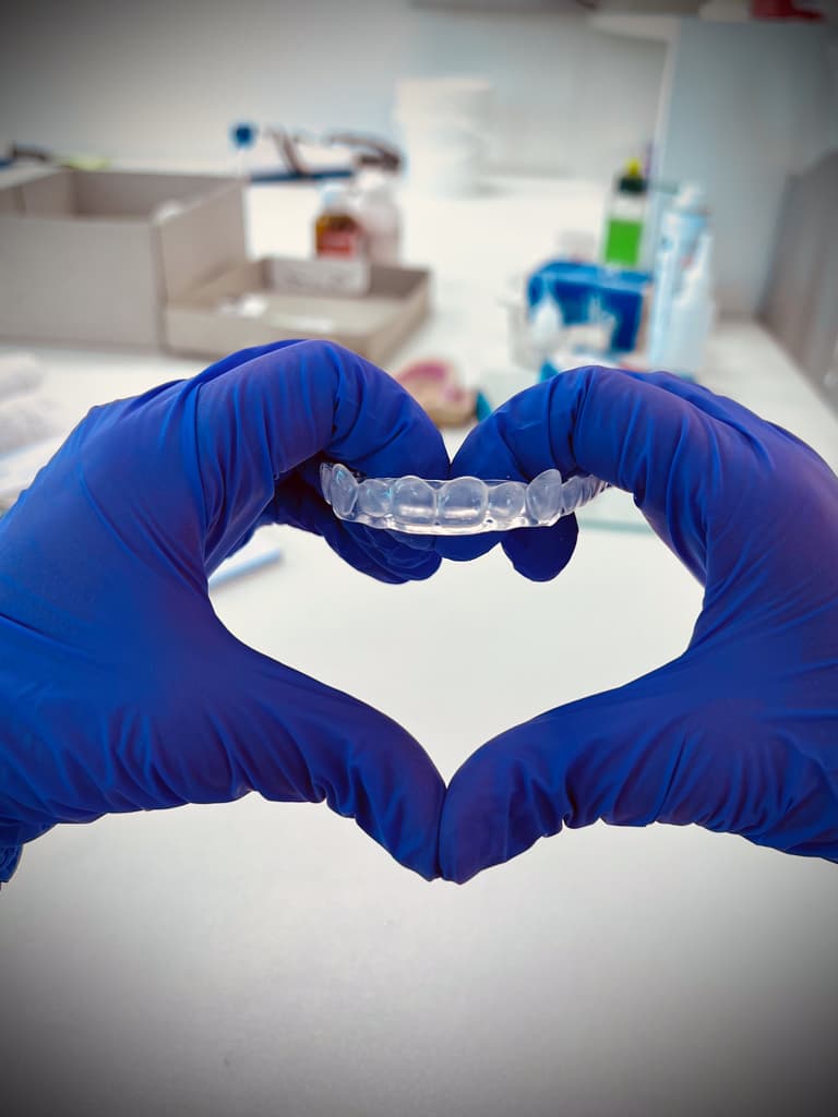 Individuell angefertigte Schienen für effektives Zahnaufhellen zu Hause. Präzise Passform, für ein strahlendes Lächeln.